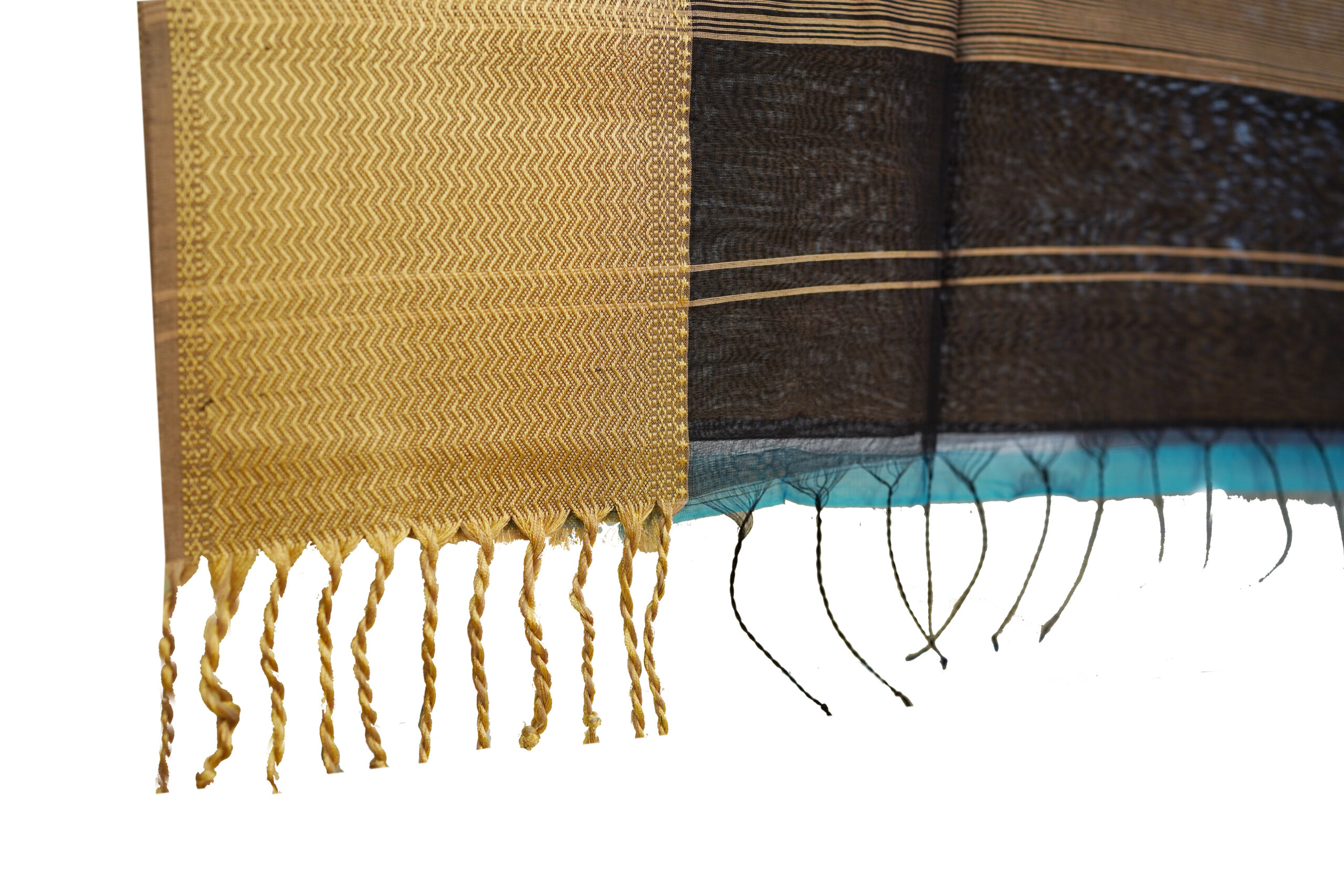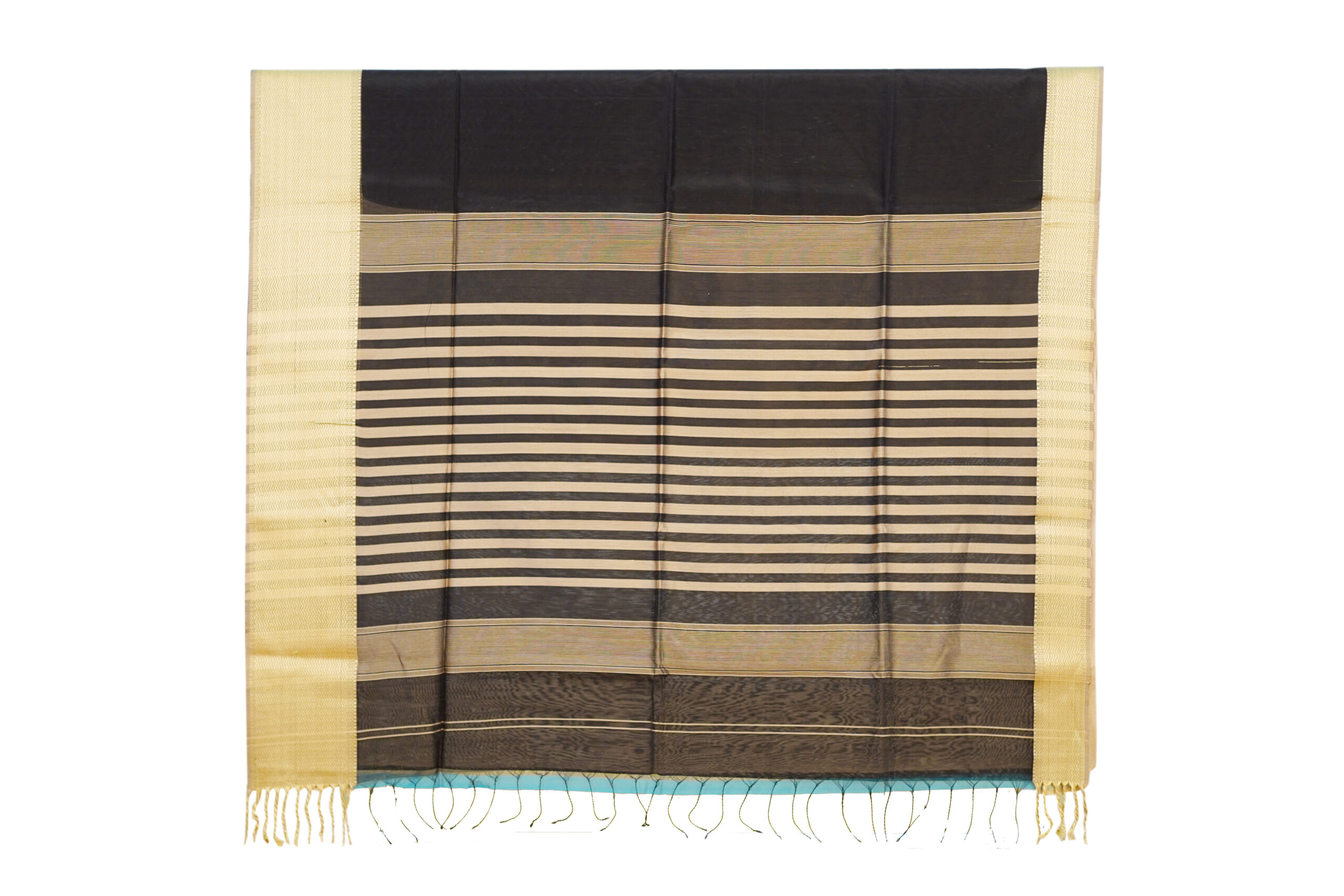 Border: Traditional gold woven border with elegant striped detailing