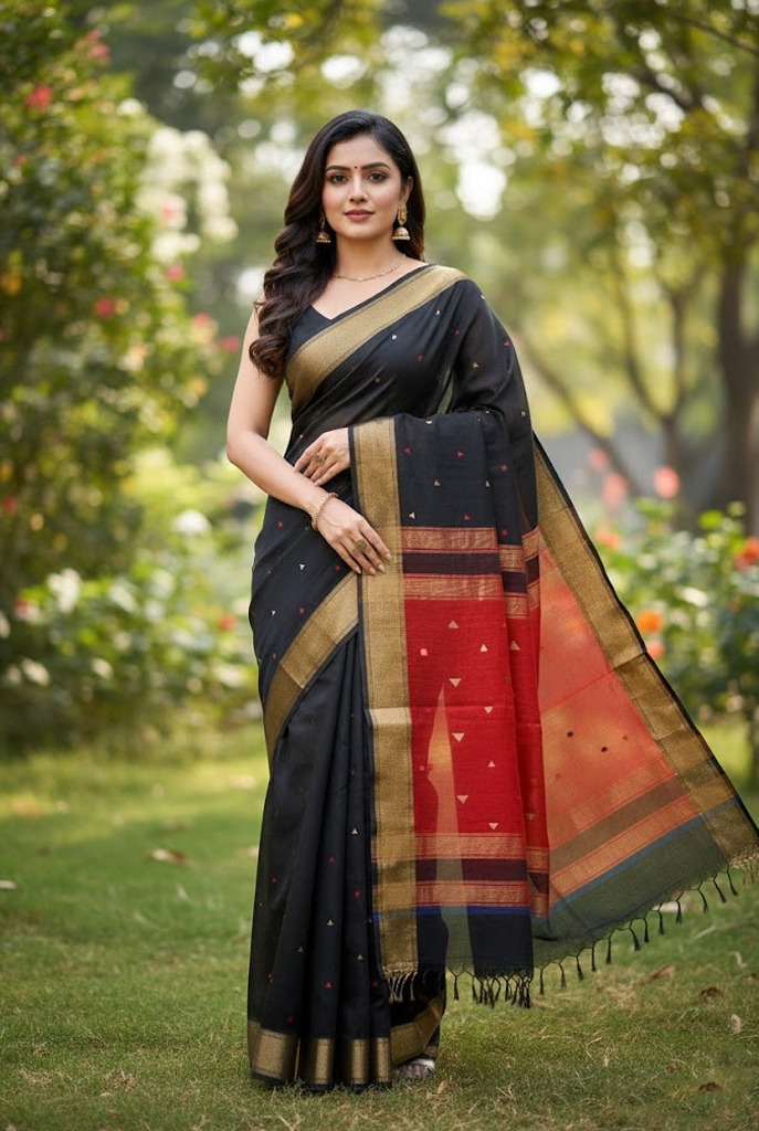 Disclaimer : Images shown are AI-generated for reference only; as each Indian handloom saree is uniquely handcrafted, the final product may vary gracefully in color, weave, and detailing.