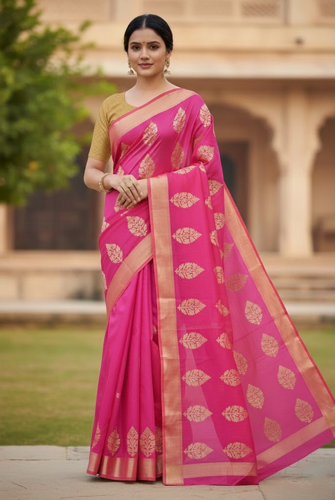 Work: Handwoven floral buttis with rich Chanderi sheen