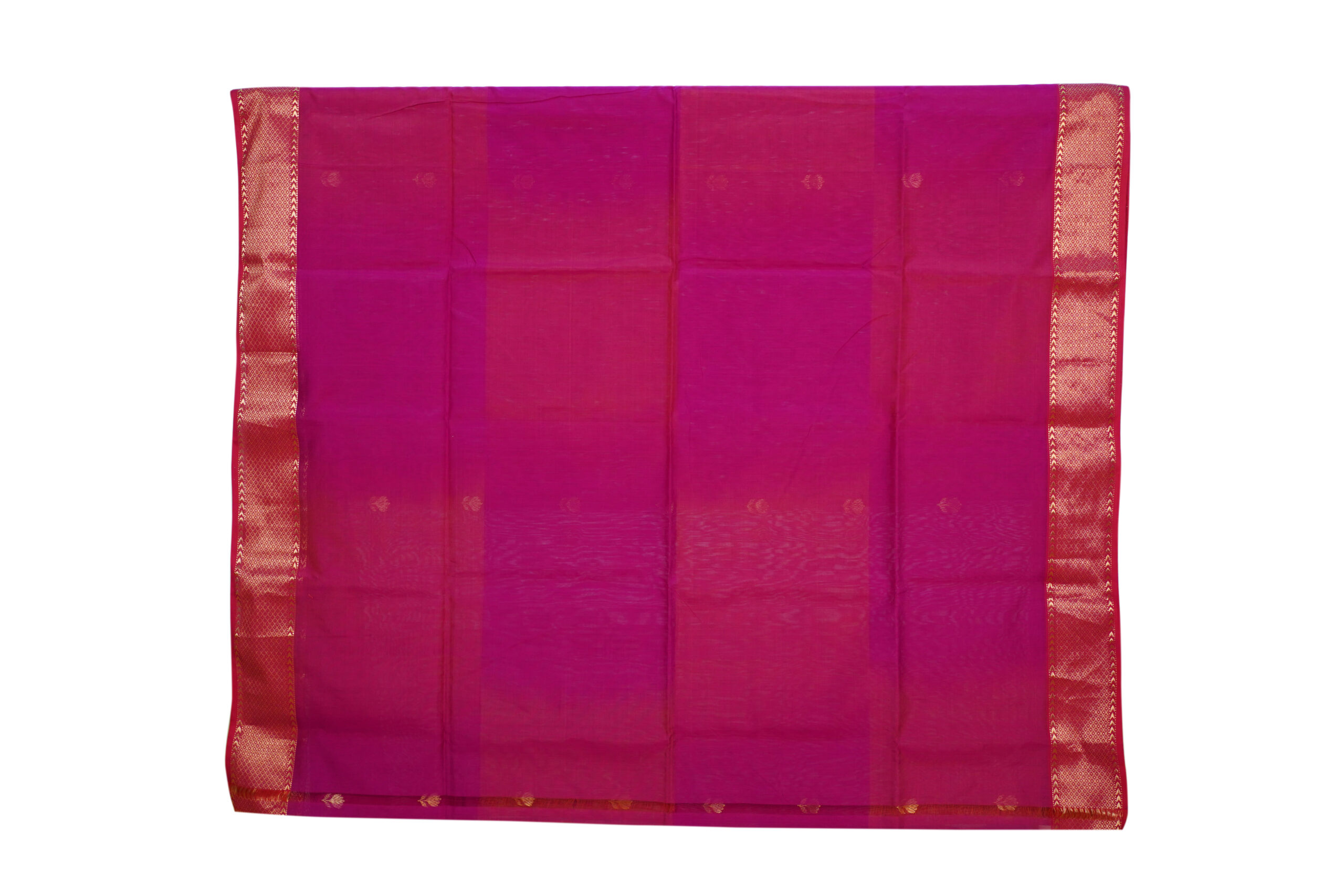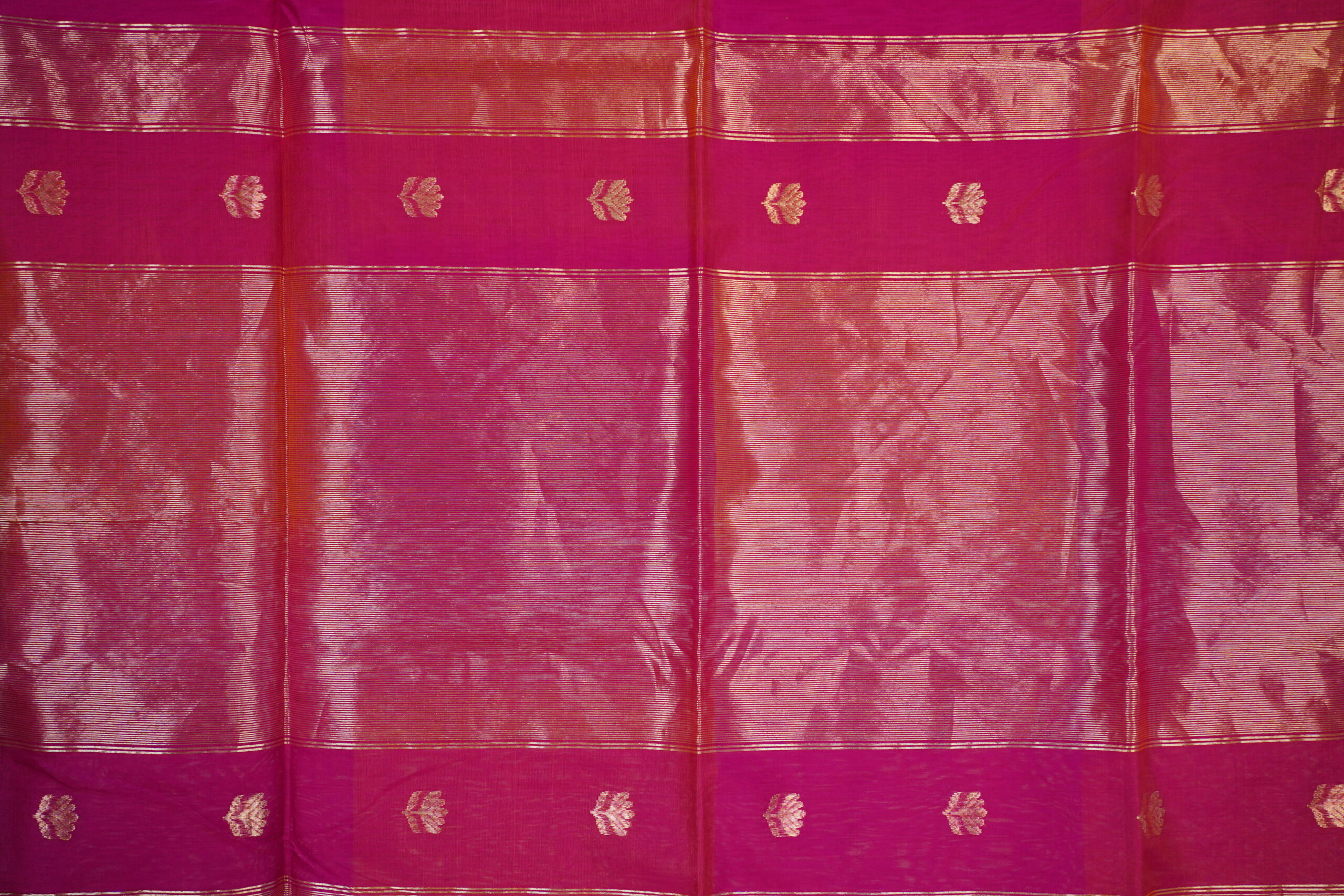 Border: Broad gold zari border with traditional woven motifs and elegant tasselled pallu